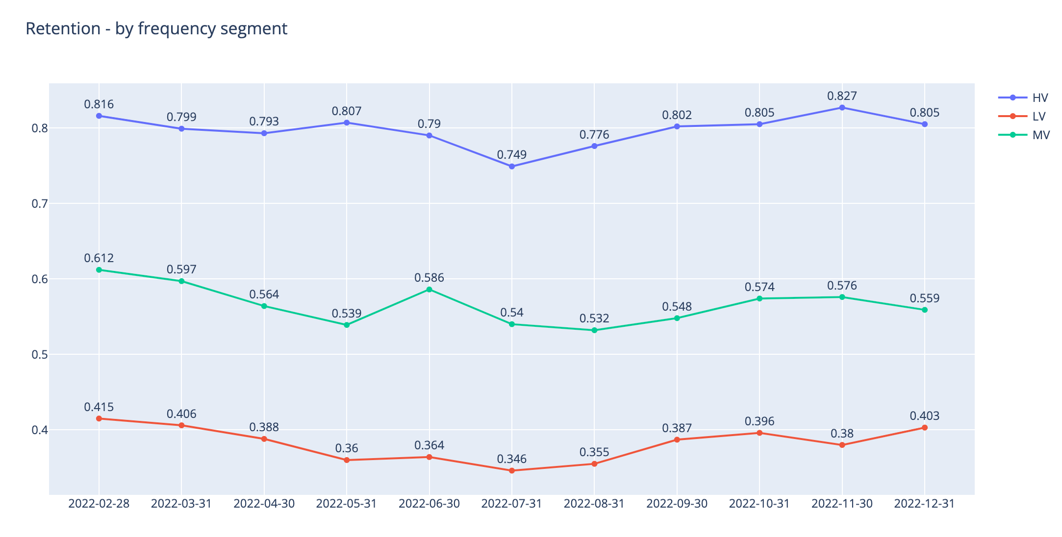 title='Retention - by frequency segment',